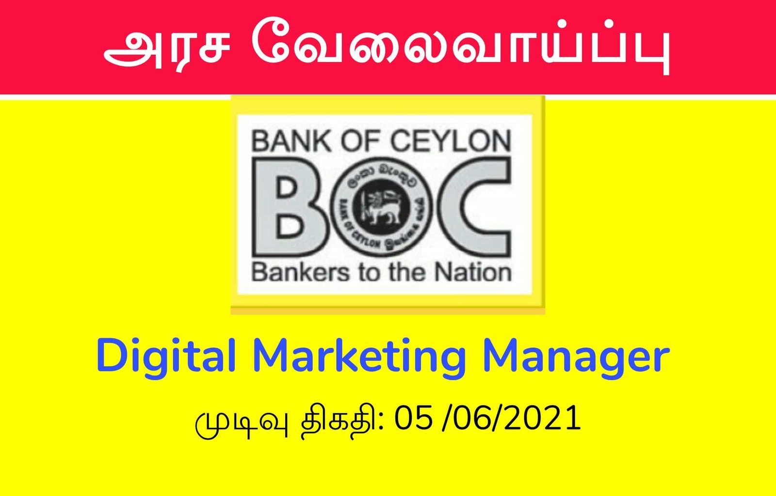 இலங்கை வங்கியில் – Digital Marketing Manager (டிஜிற்றல் வங்கியியல் முகாமையாளர்) பதவிக்கு விண்ணப்பம் கோரப்படுள்ளது.