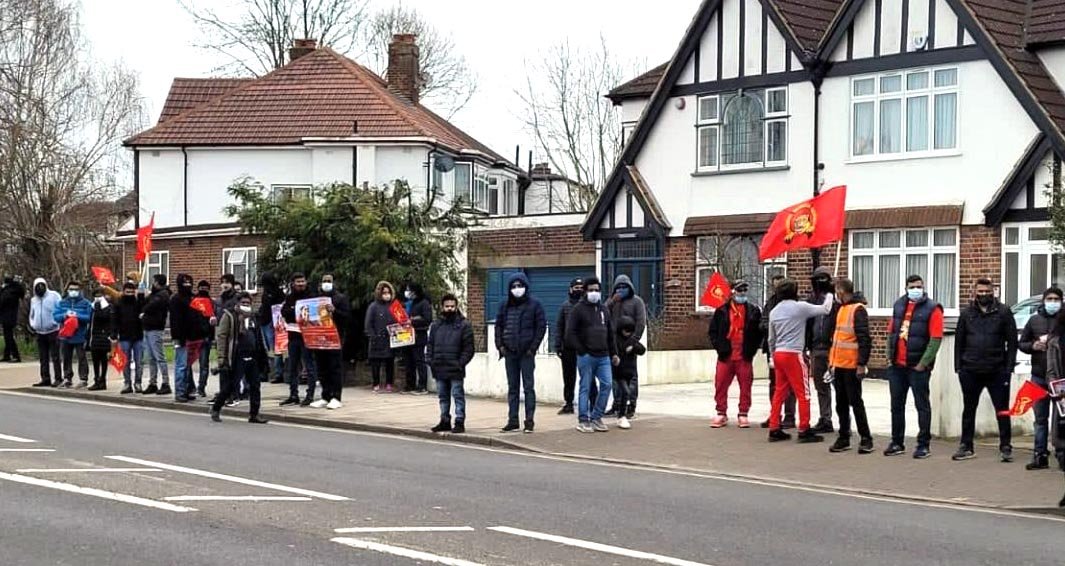 இந்நிலையில் அவருக்கு ஆதரவு அளிக்கும் வகையில் 100 இற்கும் மேற்பட்ட புலம்பெயர் தமிழர்கள் அவரது இல்லத்துக்கு வெளியில் நேற்று ஒன்று கூடி போராட்டத்தில் ஈடுபட்டிருந்தனர்.