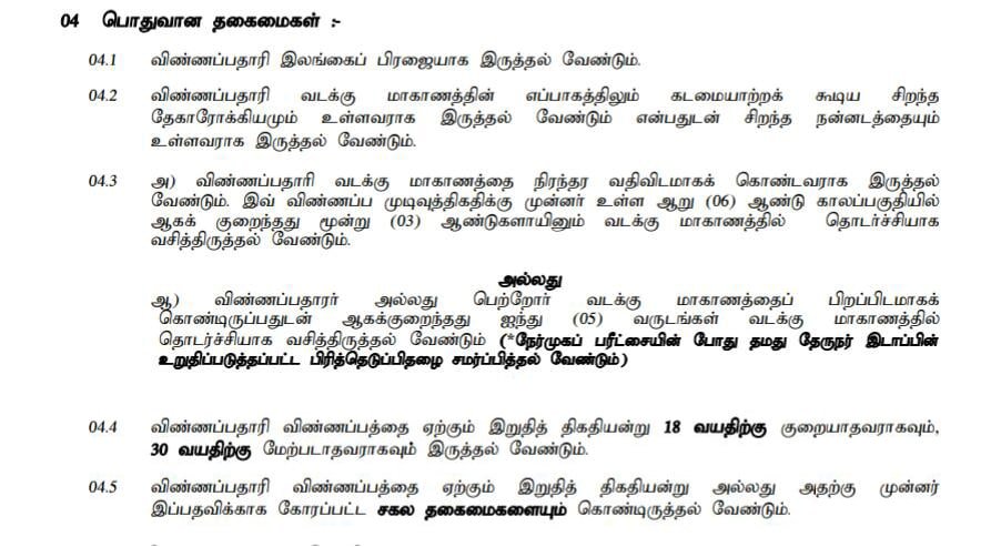 விண்ணப்பதாரி விண்ணப்பத்தை ஏற்கும் இறுதித் திகதியன்று 18 வயதிற்கு குறையாதவராகவும் , 30 வயதிற்கு மேற்படாதவராகவும் இருத்தல் வேண்டும் .