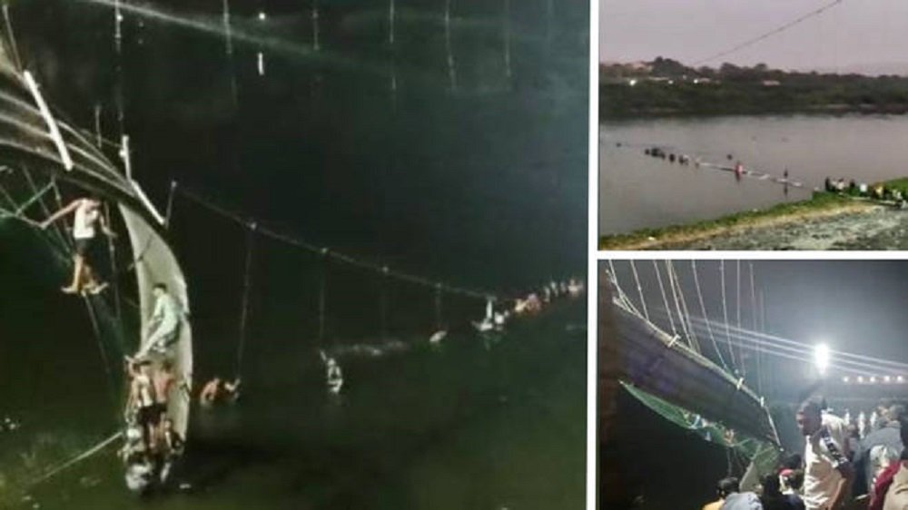 குஜராத்தின் மோர்பி நகரில் உள்ள மச்சு ஆற்றின் மீது ஏறக்குறைய நூற்றாண்டு பழமையான தொங்கு பாலம் உள்ளது. இந்நிலையில் சாத் பூஜையில் கலந்துக் கொள்வதற்காக ஏராளமான மக்கள் தொங்கு பாலம் மீது நடந்து சென்றுள்ளனர்.