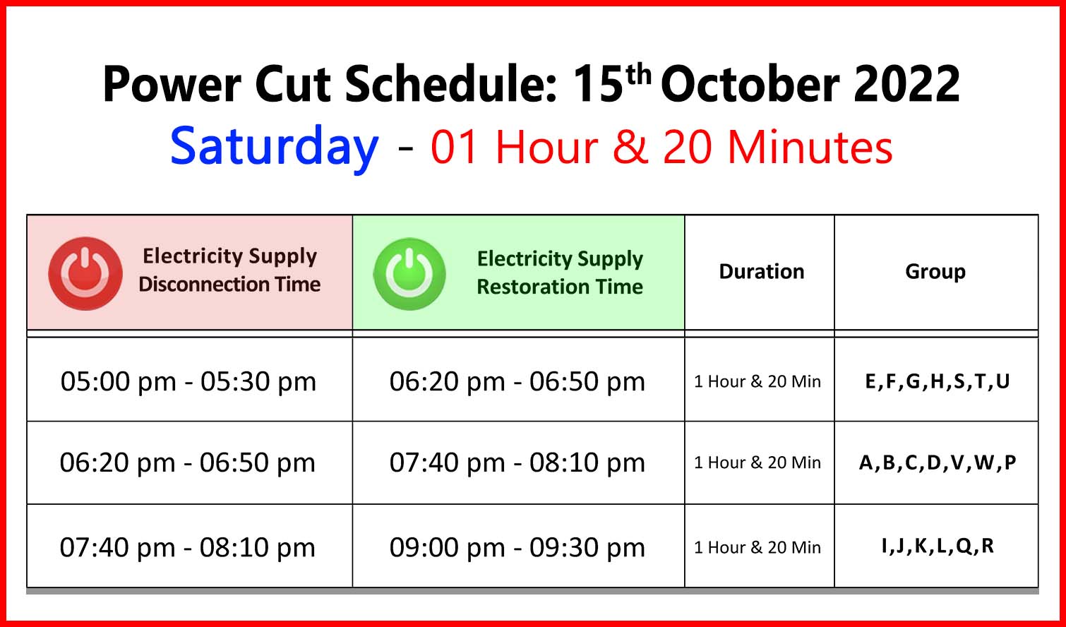 Power Cut Schedule – மின்வெட்டு அட்டவணை 15.10.2022