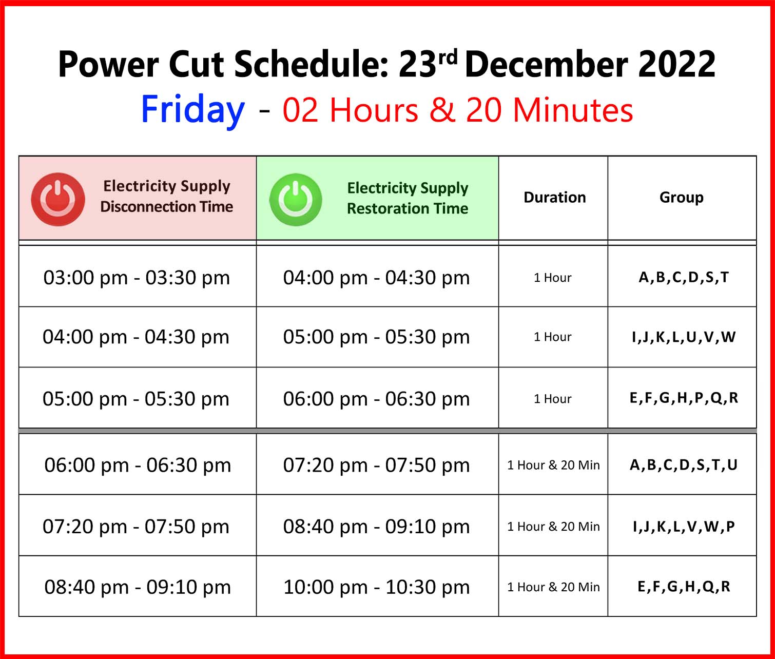 Power Cut Schedule – மின்வெட்டு அட்டவணை 23.12.2022