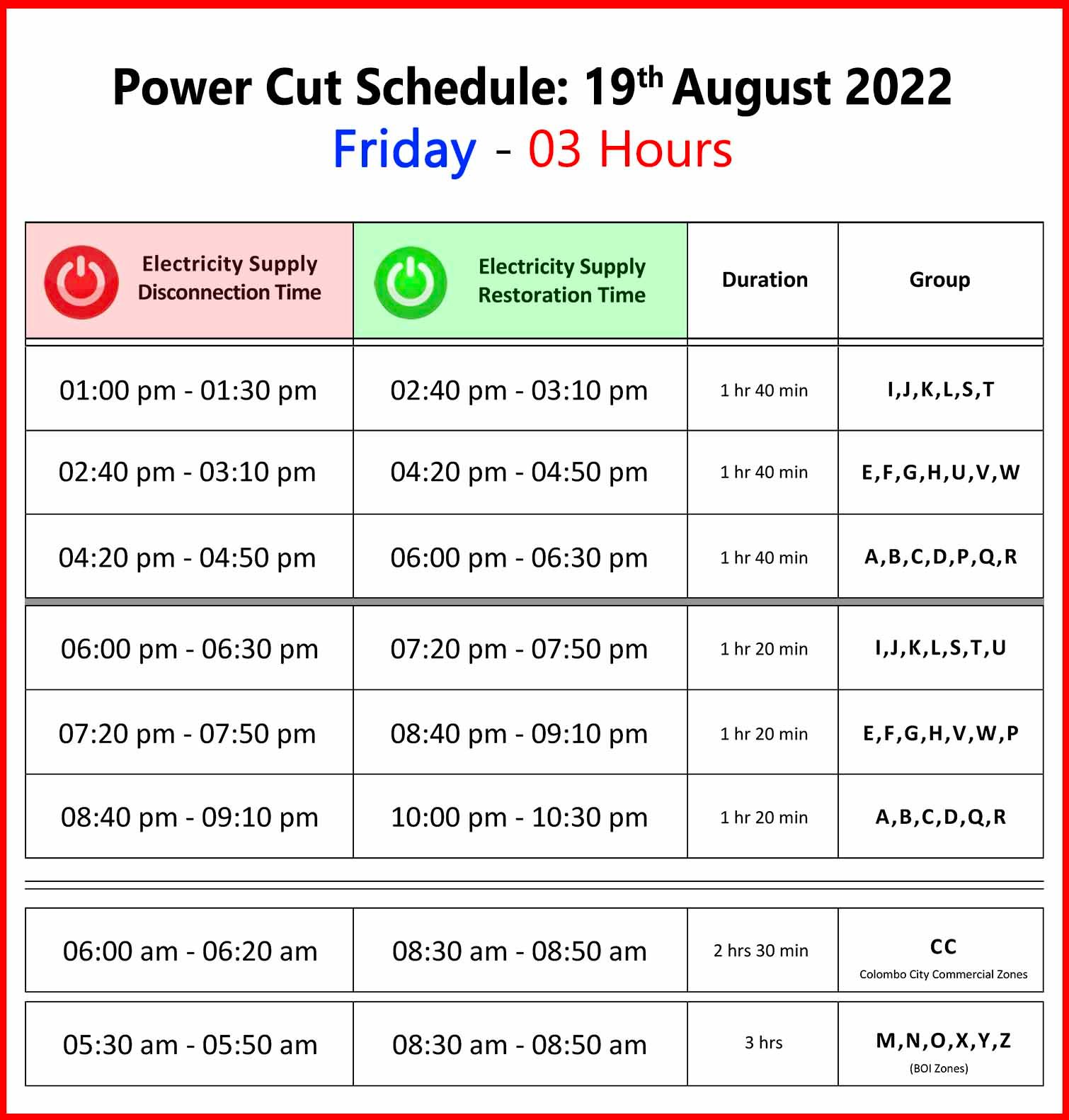 Power Cut Schedule – மின்வெட்டு அட்டவணை 19.08.2022