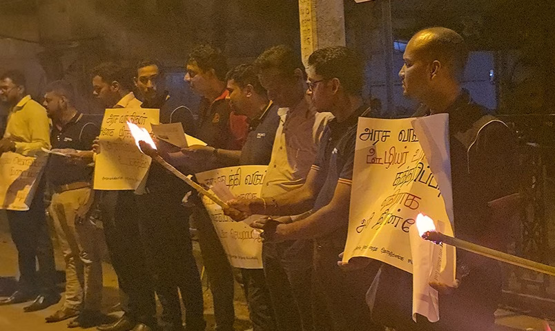 அரச வங்கிகளின் தனியார்மயமாக்கலுக்கு எதிராகத் தீப்பந்தப் போராட்டம்