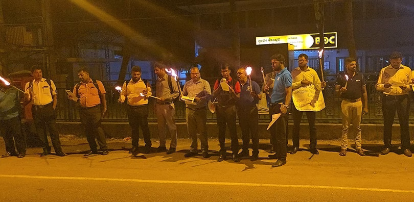 அரச வங்கிகளில் காணப்படும் பல்வேறு பிரச்சினைகளுக்குத் தீர்வு கோரியும், குறிப்பாக வங்கிகளைத் தனியார்மயமாக்கும் நடவடிக்கைகளுக்கு எதிர்ப்புத் தெரிவித்தும் இலங்கை வங்கி ஊழியர்கள் நாடு முழுவதும் தீப்பந்தப் போராட்டங்களை முன்னெடுத்தனர்.