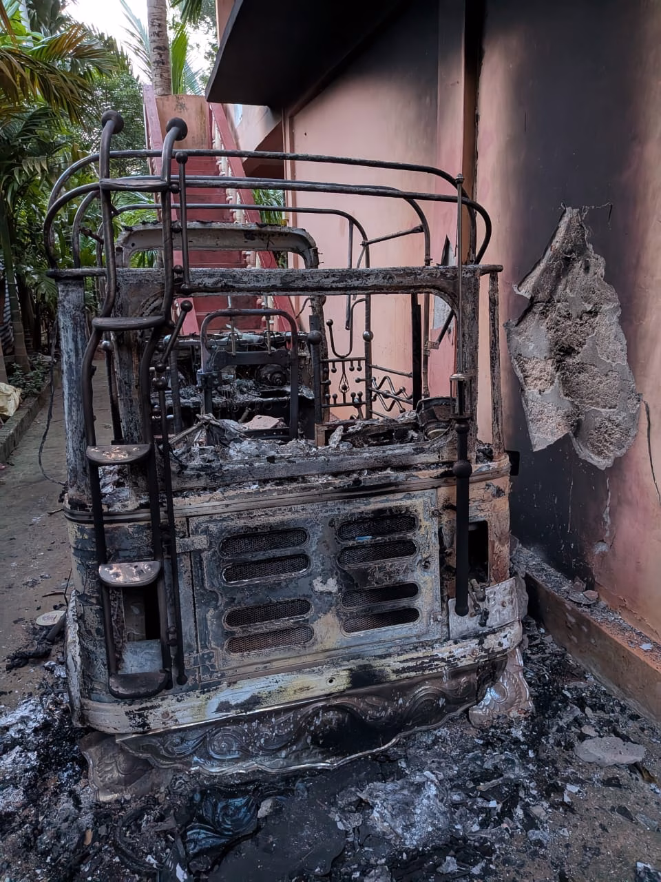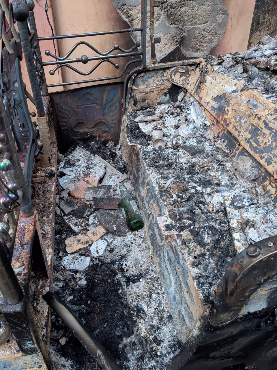 மேலும் வீட்டுக்கு தீ வைக்கப்பட்டதுடன், வீட்டில் உள்ள பொருட்களும் அடித்து நொறுக்கப்பட்டன. இந்நிலையில் விழிப்படைந்த வீட்டார் தீயை அணைத்ததால் மேலும் சேதங்கள் ஏற்படுவது கட்டுப்படுத்தப்பட்டது.