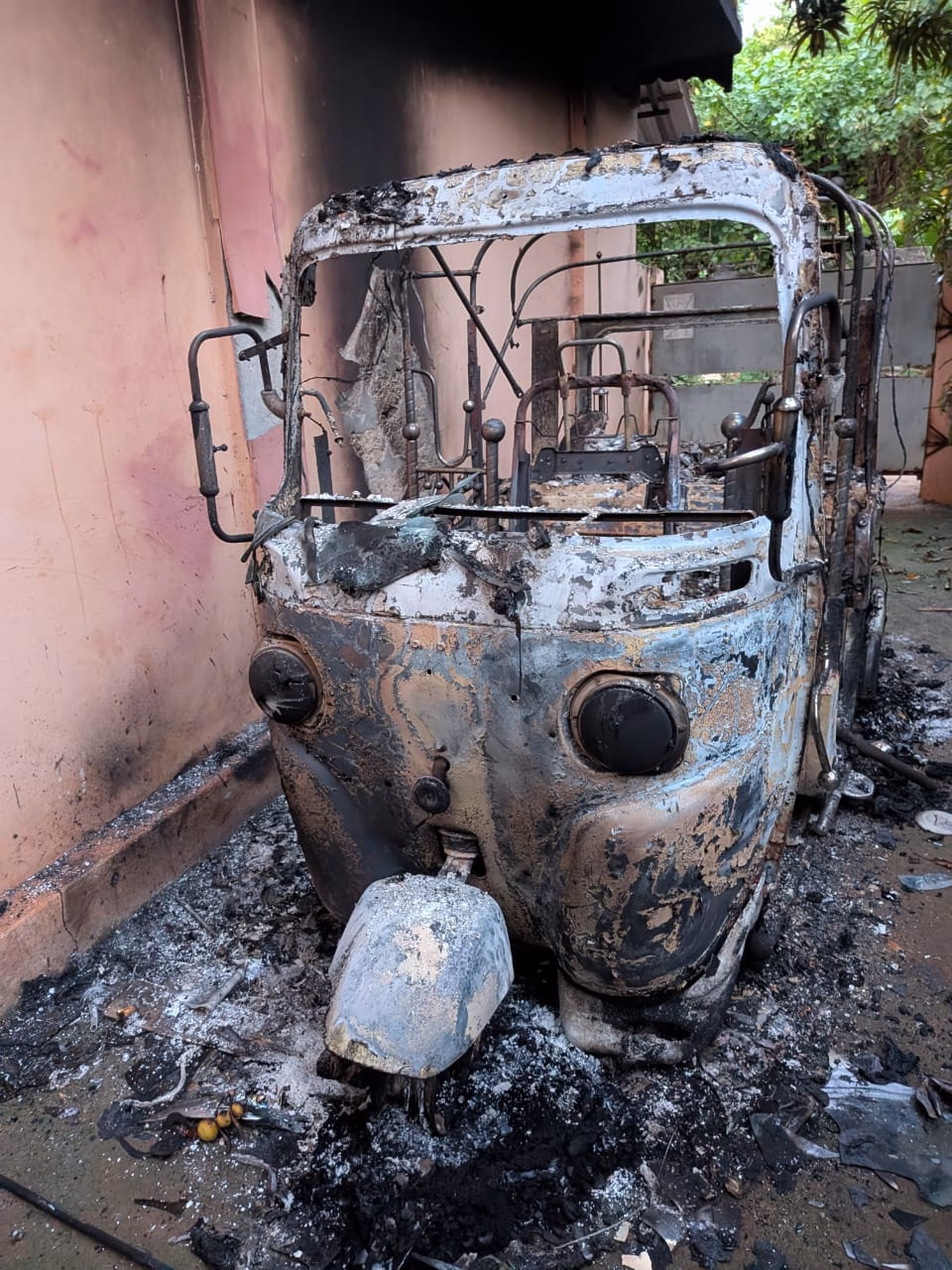 குறித்த வீட்டிற்குள் அத்துமீறி உள்நுழைந்த குறித்த வன்முறைக்குழு அங்கு நிறுத்தப்பட்டிருந்த முச்சக்கர வண்டி மீது தீ வைத்துள்ளது. இதனால் முச்சக்கர வண்டியானது முழுமையாக தீயில் எரிந்து நாசமாகியுள்ளது.